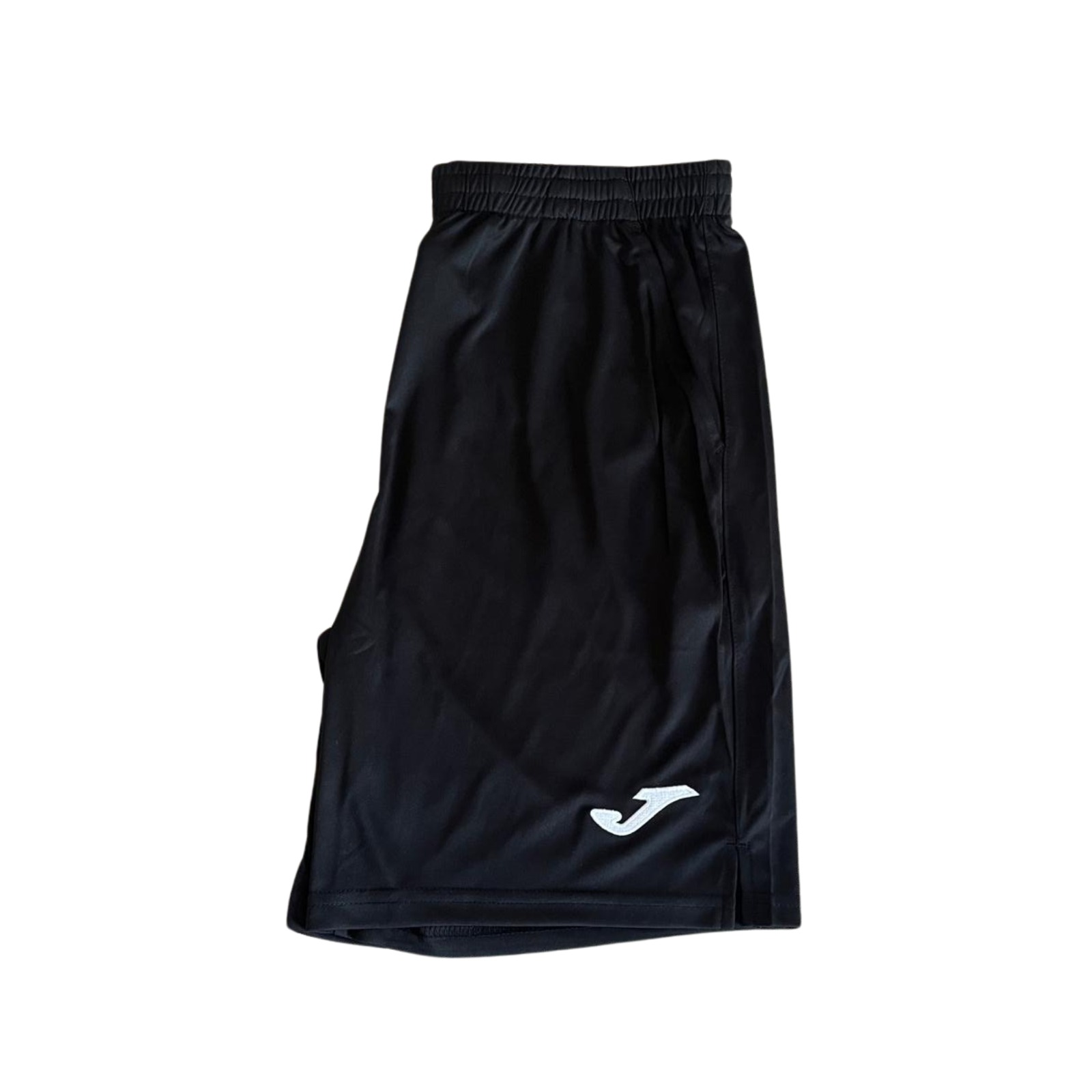 Aquests pantalons curts són de color negre amb un disseny simple i esportiu, perfectes per a la pràctica d’activitats físiques o com a part de l’uniforme de l’equip. A la part frontal, en una de les cames, hi ha el logotip de la marca Joma en blanc, que destaca sobre el fons negre del teixit.